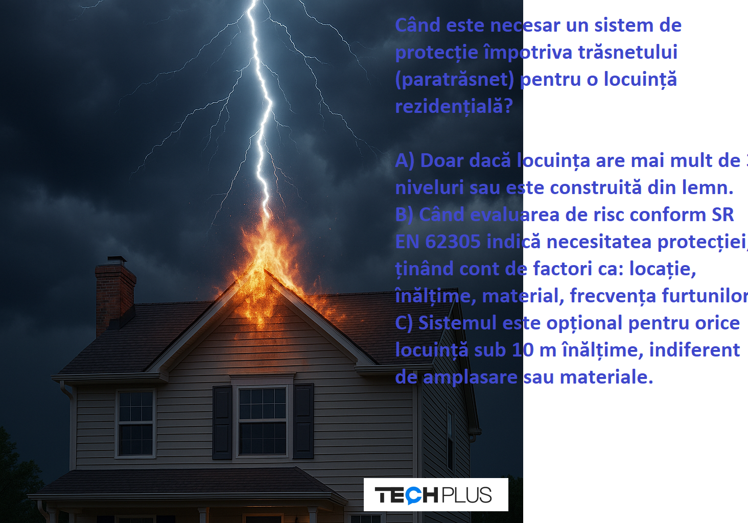 „Când evaluarea de risc conform SR EN 62305 indică necesitatea protecției, ținând cont de factori ca: locație, înălțime, material, frecvența furtunilor.”