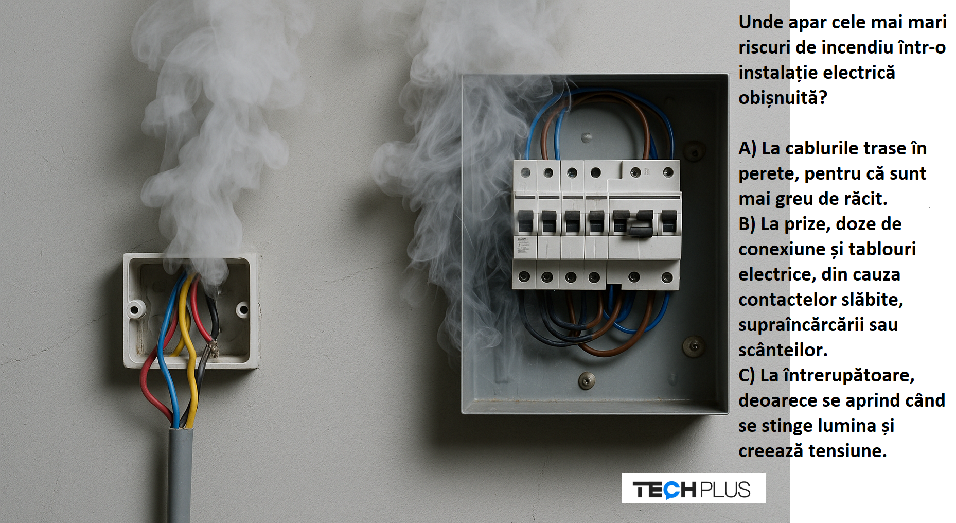 „La prize, doze de conexiune și tablouri electrice, din cauza contactelor slăbite, supraîncărcării sau scânteilor.”